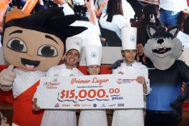 Los ganadores del premio ¡A chopear! Reto culinario, encabezados por el alumno de noveno semestre de la Licenciatura en Gastronomía, Luis Edmundo Ruiz Ponce, agradecieron el apoyo de directivos y docentes de la Facultad de Administración, quienes los orientaron para competir y obtener el primer lugar, consistente en un premio de 15 mil pesos para cada uno.