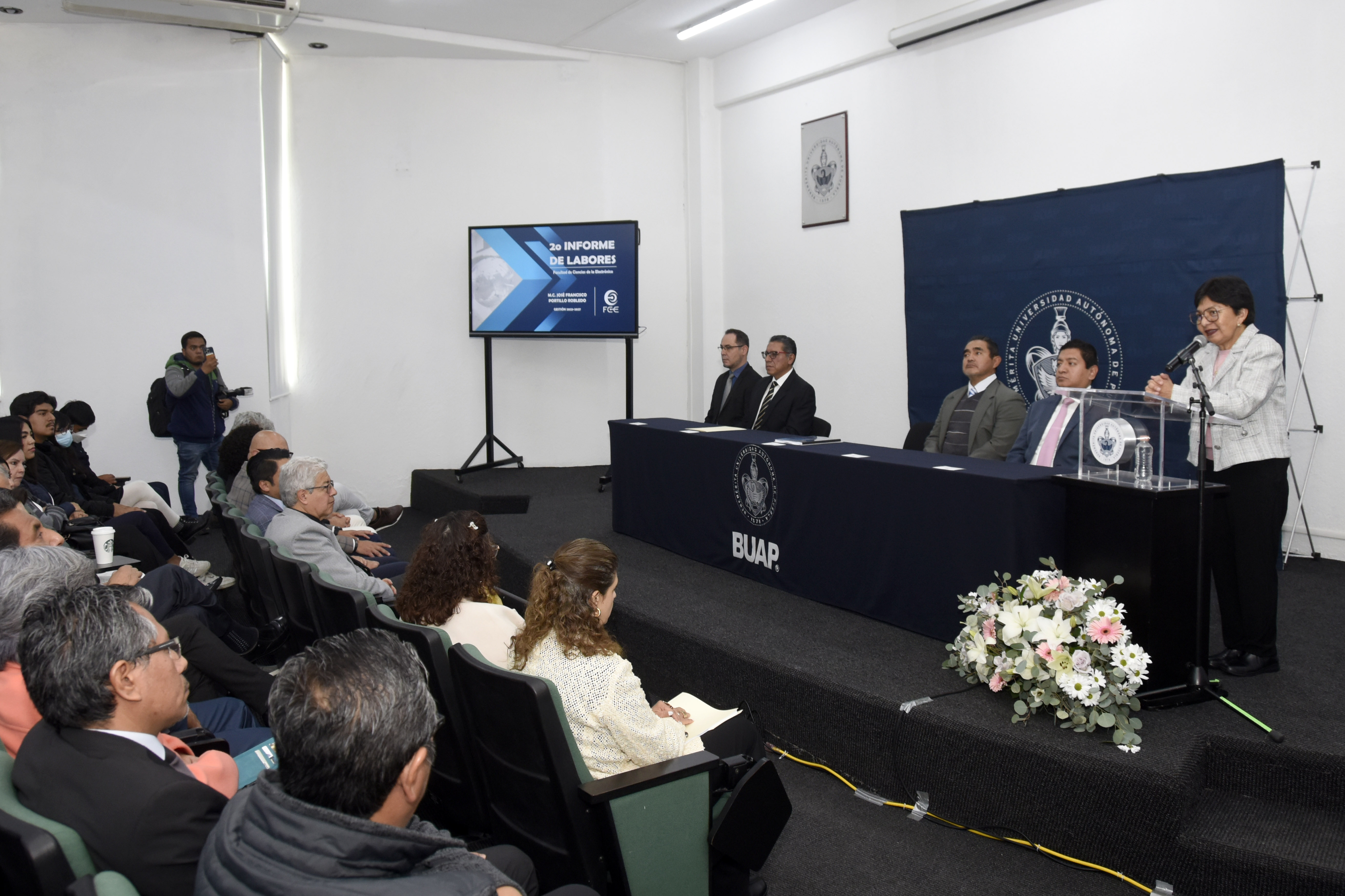 Rectora Lilia Cedillo preside Segundo Informe de Labores de José Francisco Portillo Robledo, director de la Facultad de Ciencias de la Electrónica de la BUAP.