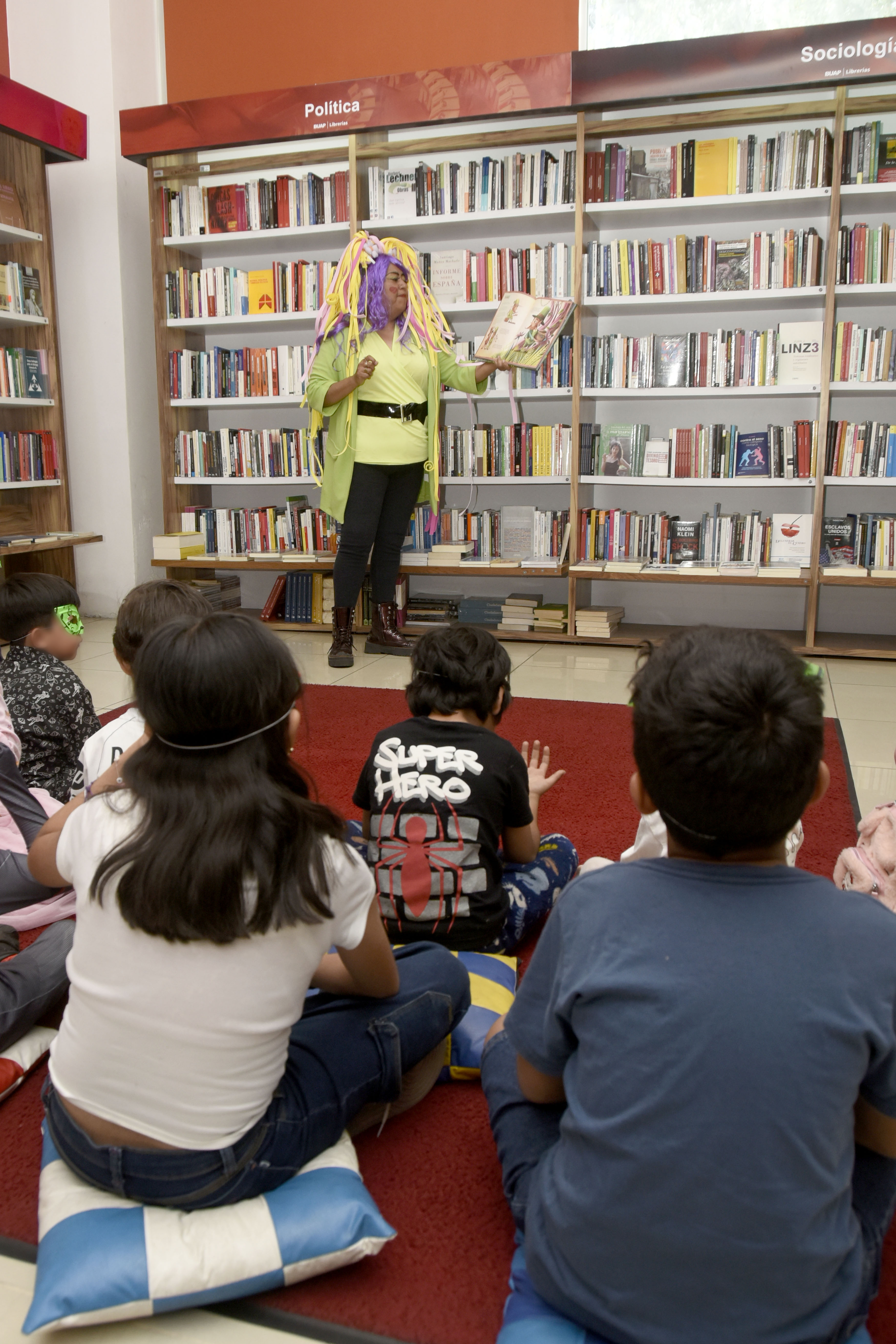 Cada sábado en la librería BUAP del Complejo Cultural Universitario los cuentacuentos se dan cita para entretener con historias infantiles a niños y niñas.